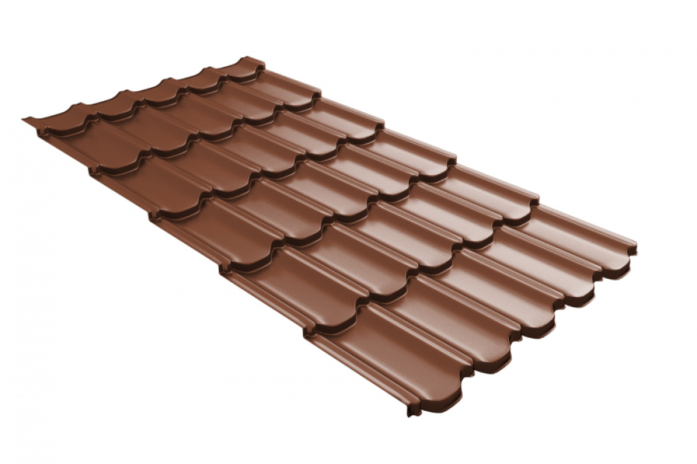 Металлочерепица Grand Line Kvinta plus 3D PurLite Matt RAL 8004 терракота
